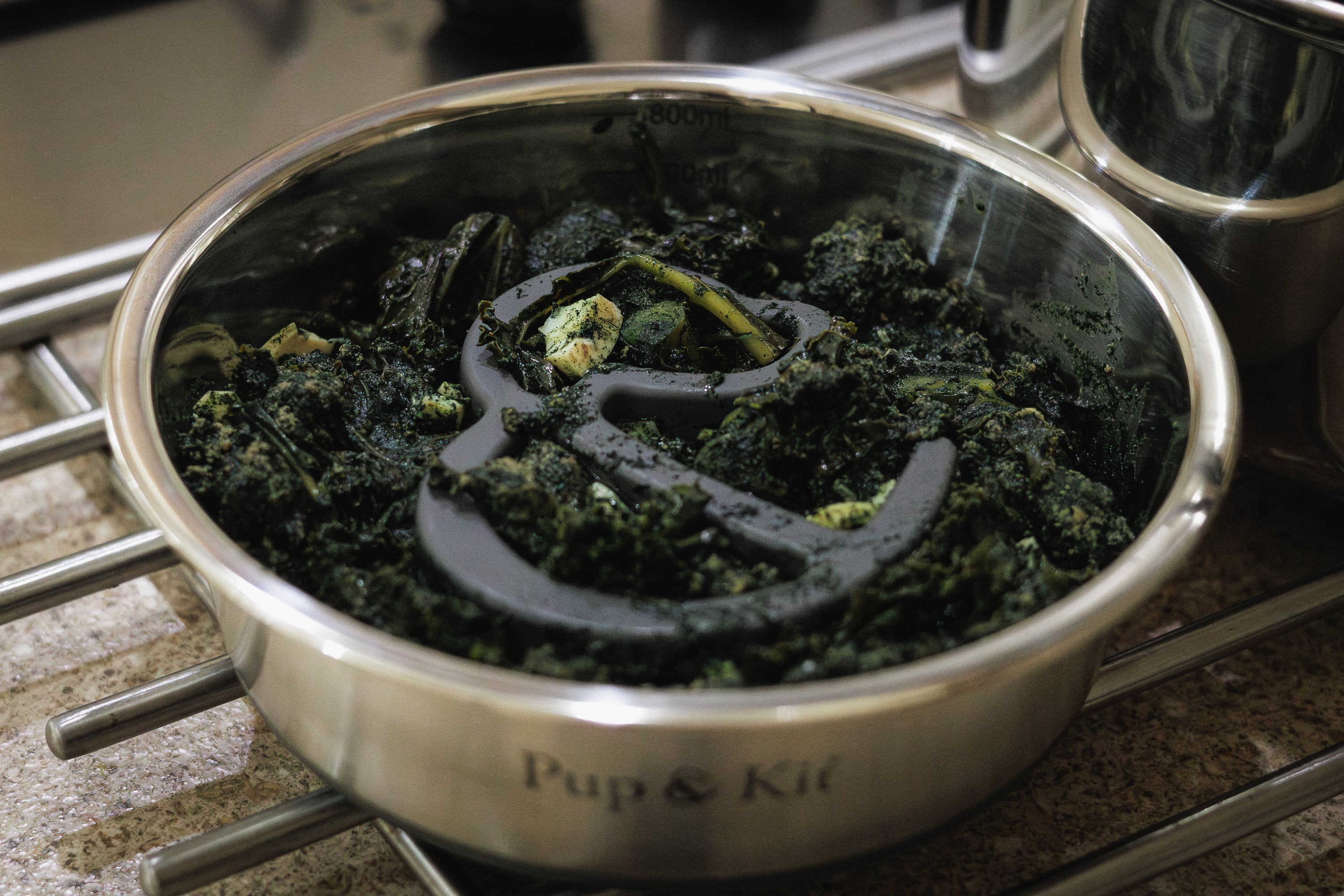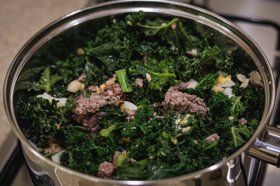 Step 1: Chop the kale, liver, venison and salmon, or use pre-ground meat if preferred.