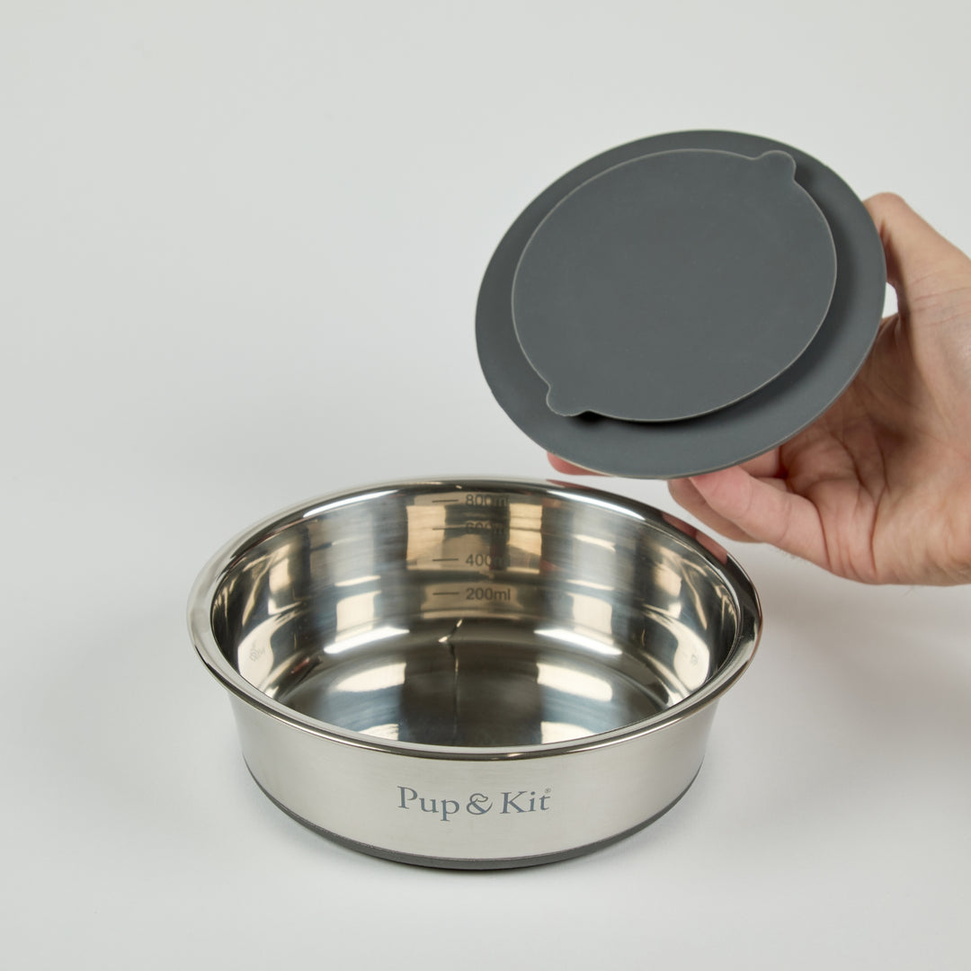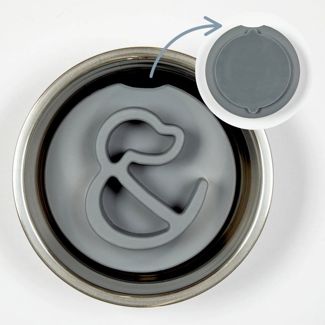 First wash out the bowl to remove any excess food. Then pull back on the head of the logo to raise the cut out slot. Lift the tab underneath to break the seal and release the suction cup. We recommend using a non-metallic utensil or teaspoon as an easy and hygienic way to do this.